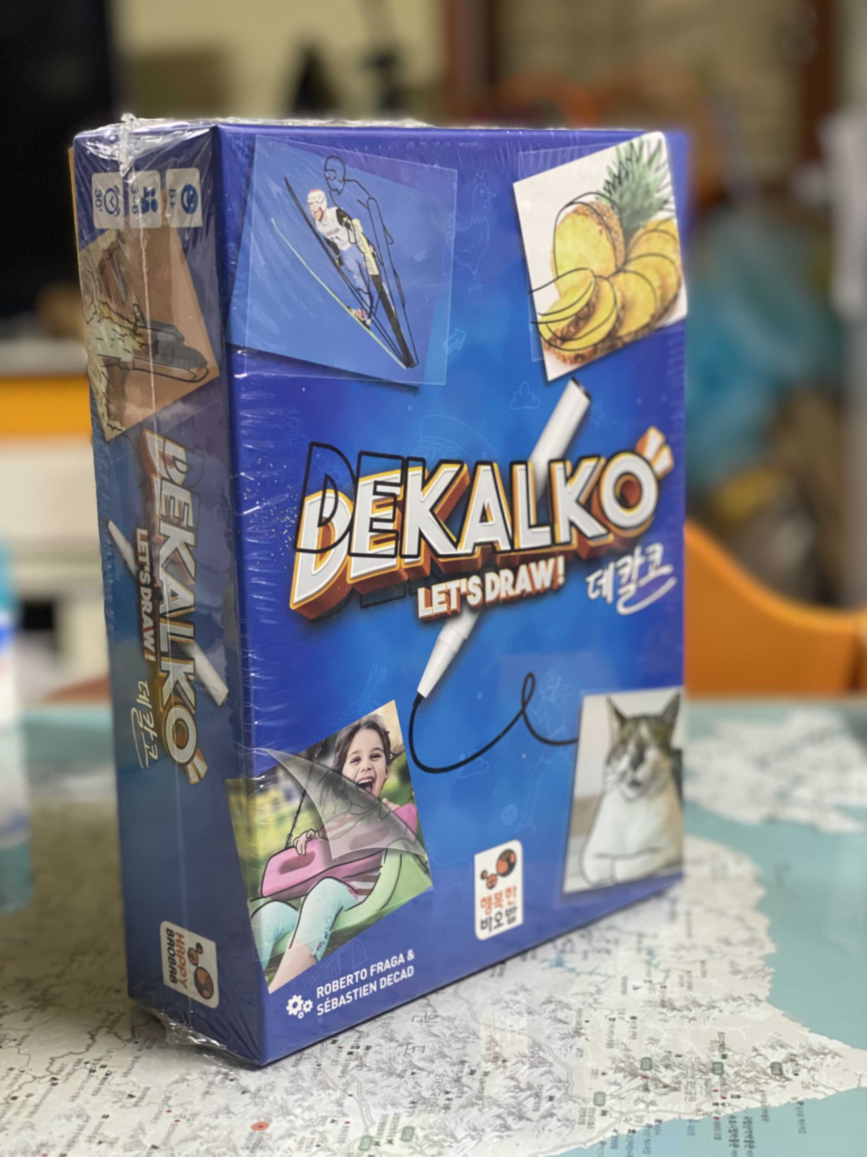 이와 달리 데칼코는 주어진 사진위에 투명한 시트를 올리고, 따라 그린다음 다른 사람들에게 맞추게 하는 방식인데, 보기에는 사진을 대고 그림을 그리니 그림이 매우 쉽게 그려질것 같지만... 실제로는 사진을 치우는 순간, 자기 스스로도 충격을 받게되는 그림이 남는다. 이때 이 그림을 본 다른 플레이어들이 전혀 이상한 답을 내는 순간과 그 플레이어들이 그 그림의 결과가 전혀 이상한 내용임을 알게 될 때 웃음 포인트가 발생한다.