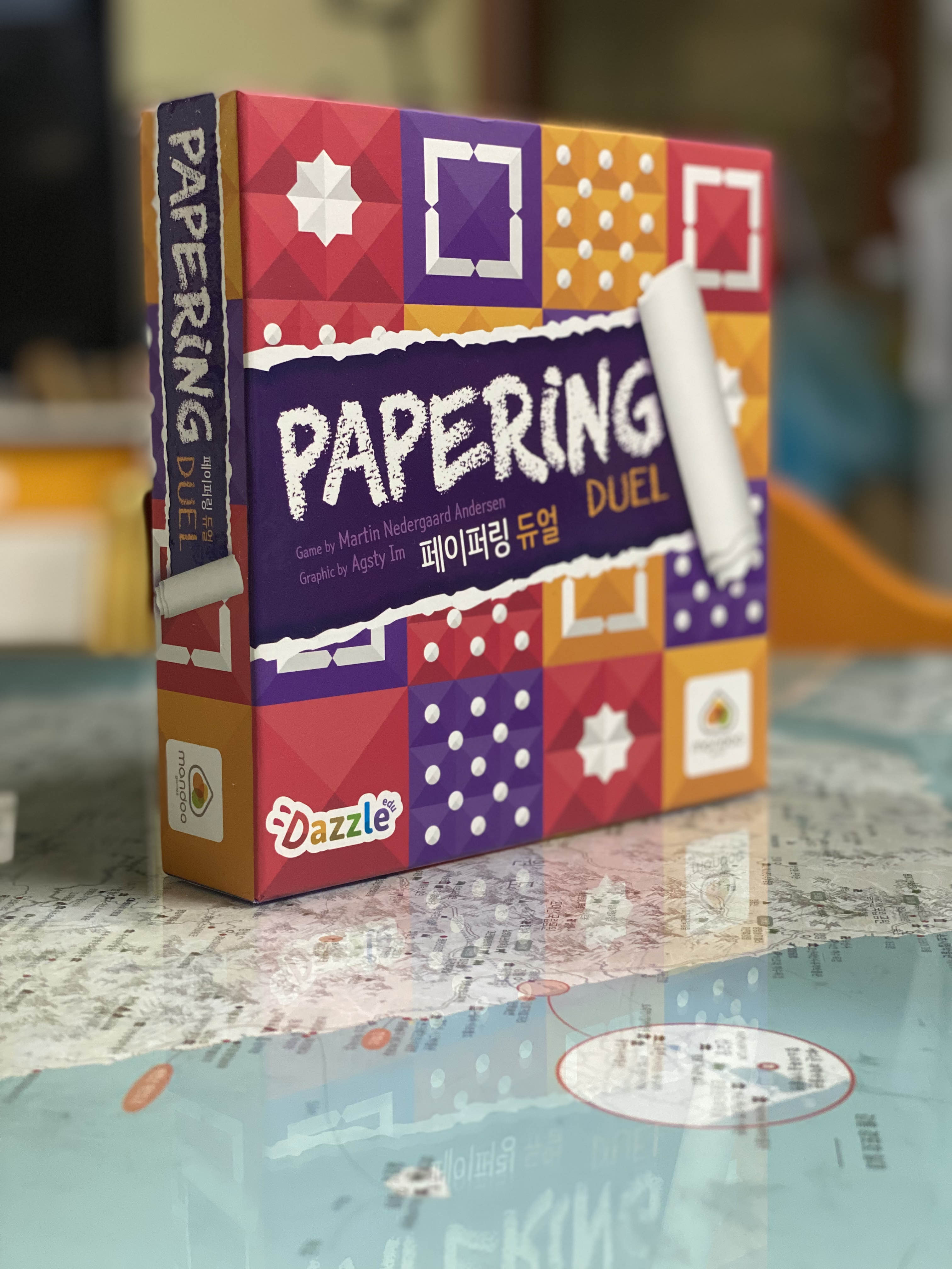 "페이퍼링 듀얼"은 2인 전용 전략 보드게임으로, 종이를 접는 듯한 느낌의 패턴 배치가 핵심인 게임이다. 플레이어들은 각자의 타일을 보드 위에 배치하면서 상대보다 먼저 특정 패턴을 완성해야 한다. 공간을 어떻게 활용할지, 상대의 전략을 어떻게 방해할지가 승패를 가르는 중요한 요소가 된다.