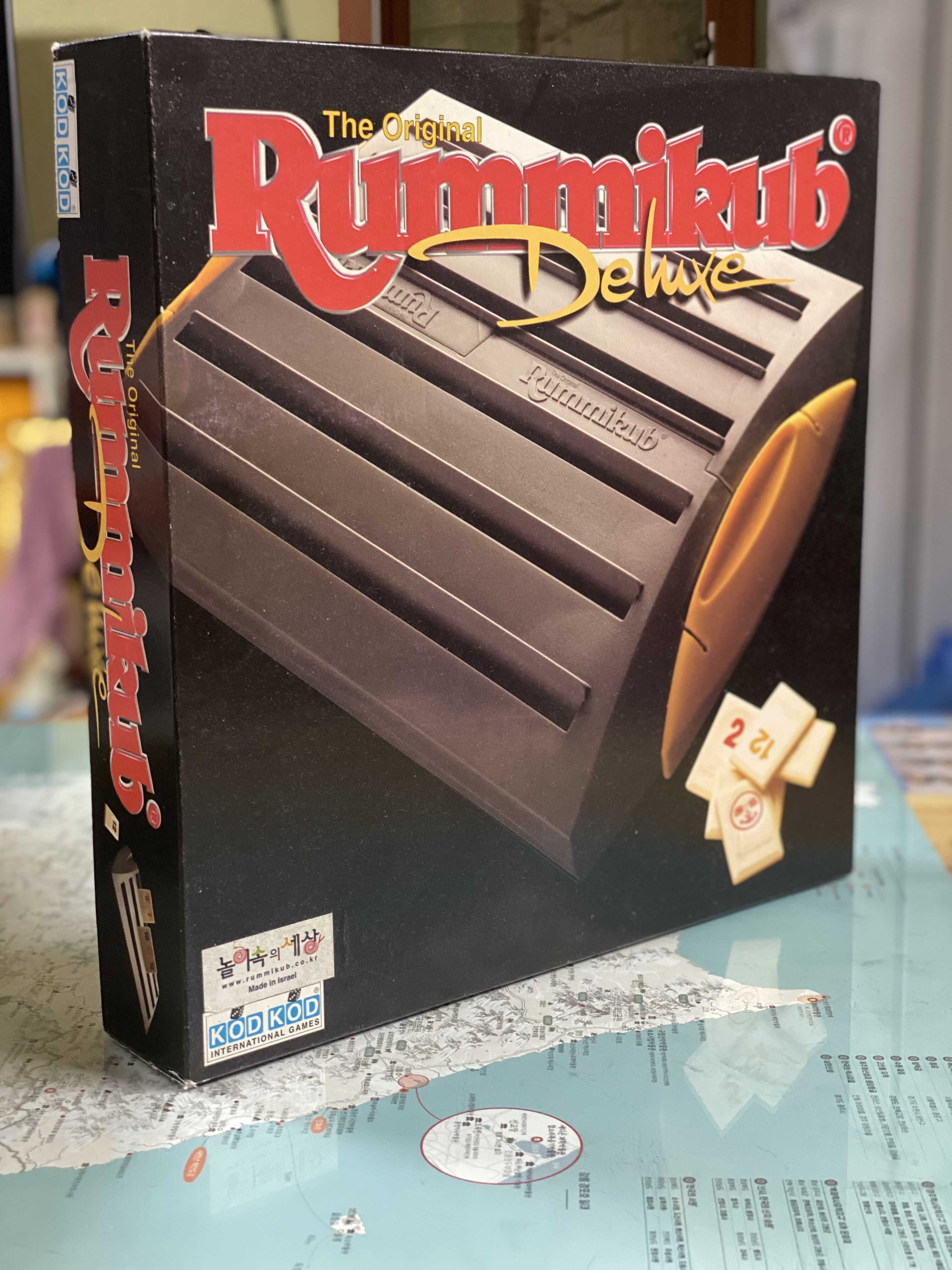 사진으로 같이 올린 게임은 구입한지 20년이 다 된, 지금은 절판된 디럭스 버전이다. 이 버전의 특징은 타일 스텐드들 4개가 합쳐져 케이스가 된다는 것인데, 나쁘진 않은데 의외로 조악하다고 느껴지는 부분도 있다... 무엇보다 박스에 있는 사진같은 느낌도 아니고, 만약 그렇다고 해도 사진에 보이는 노란색 잠금장치가 노란색이 아니라 파란색인 경우가 있는데... 이 경우는 확실히 촌스럽다.
