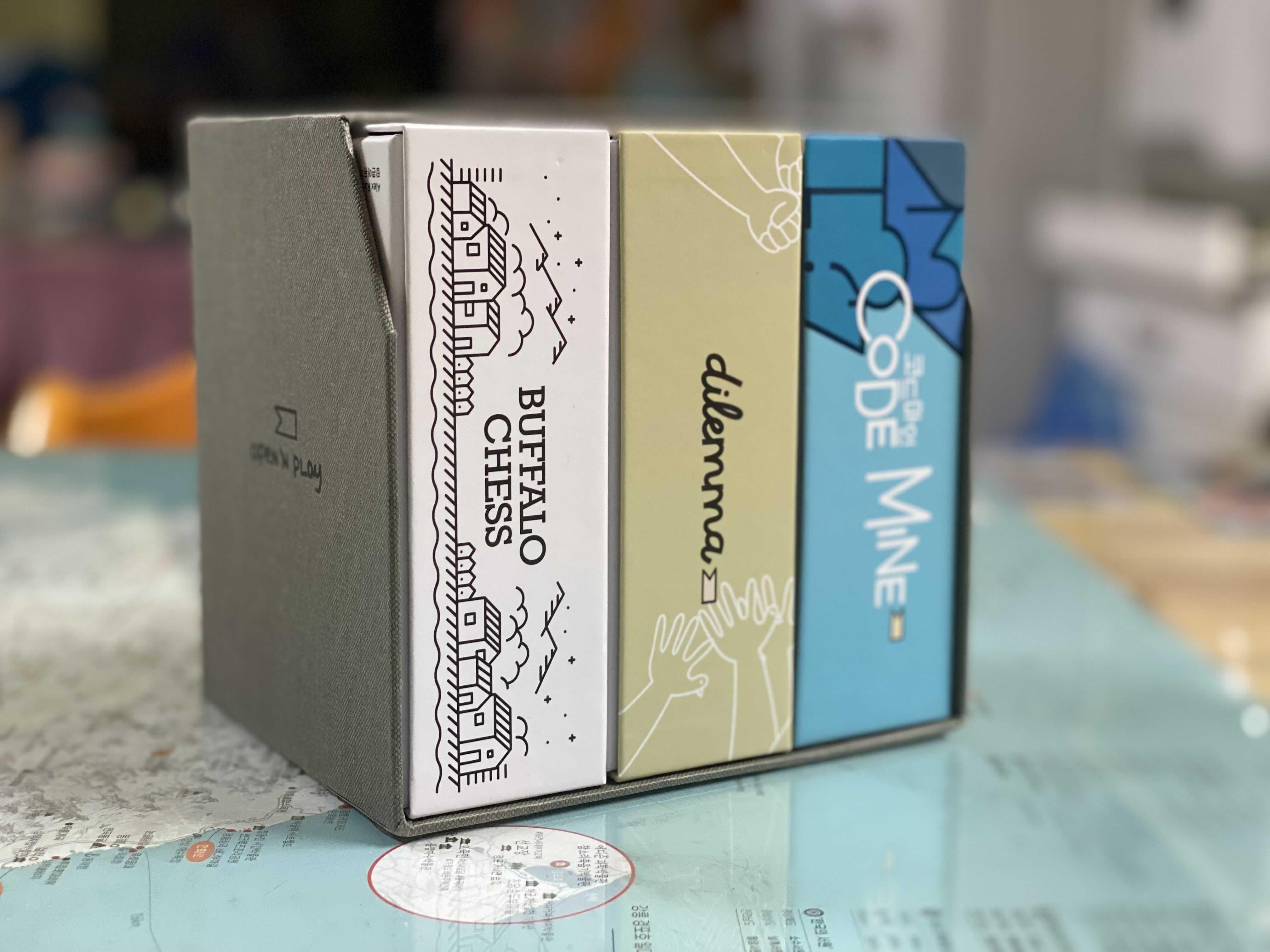 이 게임들은 알렉스 란돌프 옹의 게임중 3가지 미니게임을 모아 출시한 제품으로 버팔로 체스, 딜레마, 코드마인 이렇게 세가지 게임을 리테마 하여 북커버에 넣어 보관할 수 있게 출시하였다. 알렉스 란돌프 옹의 게임 중 유명한 게임이 무지하게 많지만 그중 블러핑 게임의 대명사인 챠오챠오, 퍼즐게임의 대명사인 리코쉐 로봇, 얼마전에야 출시된 독수리 눈치싸움 등등등.... 그의 많은 게임들이 머리를 사용하되 눈치도 봐야하고, 일종의 감정적 딜레마를 느끼게 하는 경우가 많다.