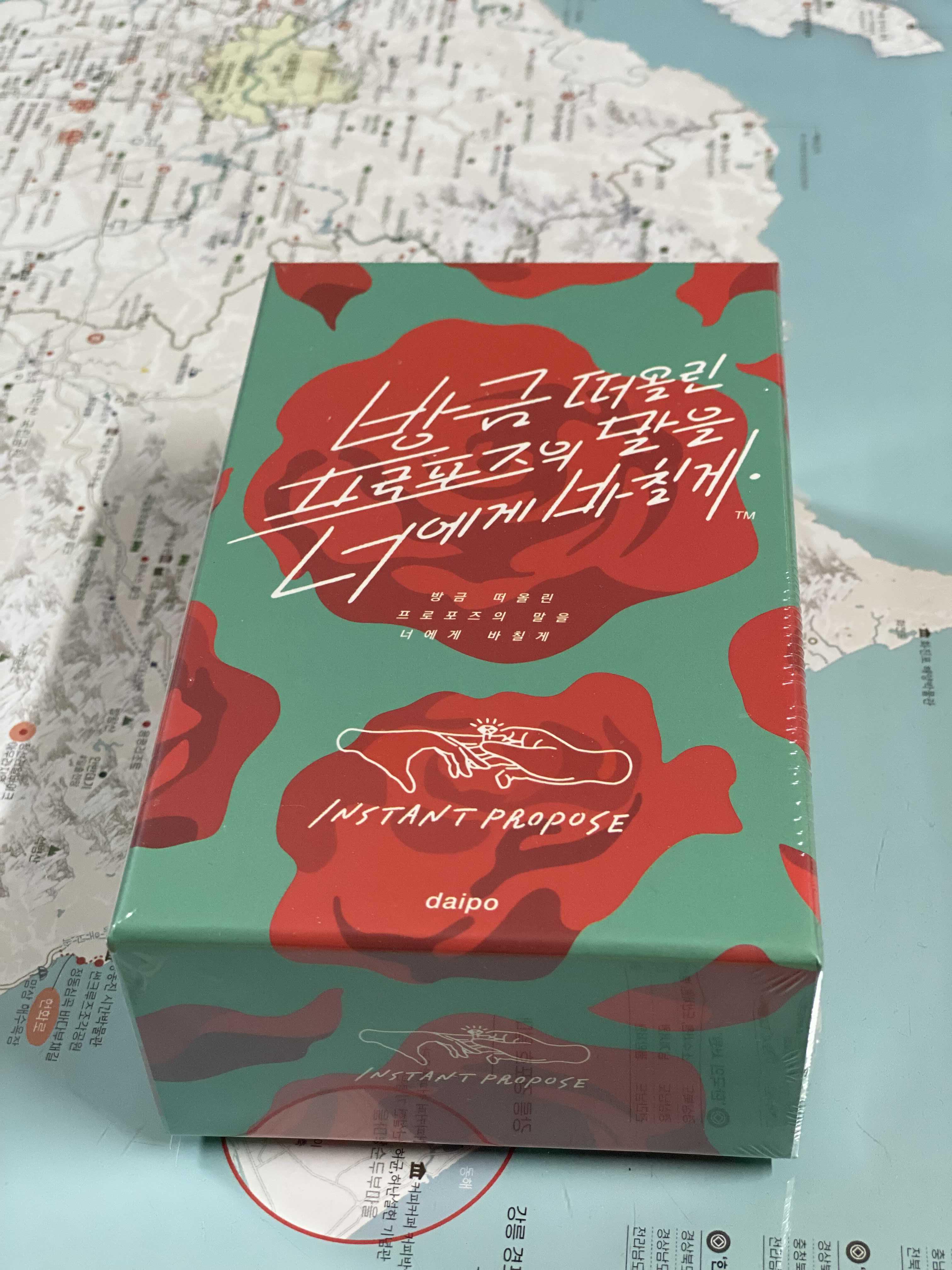 '방금 떠올린 프로포즈의 말을 너에게 바칠게'는 주어진 단어 카드를 조합하여 독특하고 재미있는 프로포즈 문장을 만드는 파티 게임이다. 플레이어들은 각자 단어 카드를 무작위로 뽑아, 이를 활용해 가장 창의적이고 감동적인 프로포즈를 구성해야 한다. 이러한 과정에서 예상치 못한 조합이 탄생하여 웃음을 자아낸다. 게임을 진행하다보면 남자에게 프로포즈를 한다거나, 말도 안되는 말로 프로포즈를 해야 하는 상황이 생기는데 정말 누군가가 눈 딱 감고 미친(!)발언들을 하기 시작하면 분위기가 폭발해 버린다.