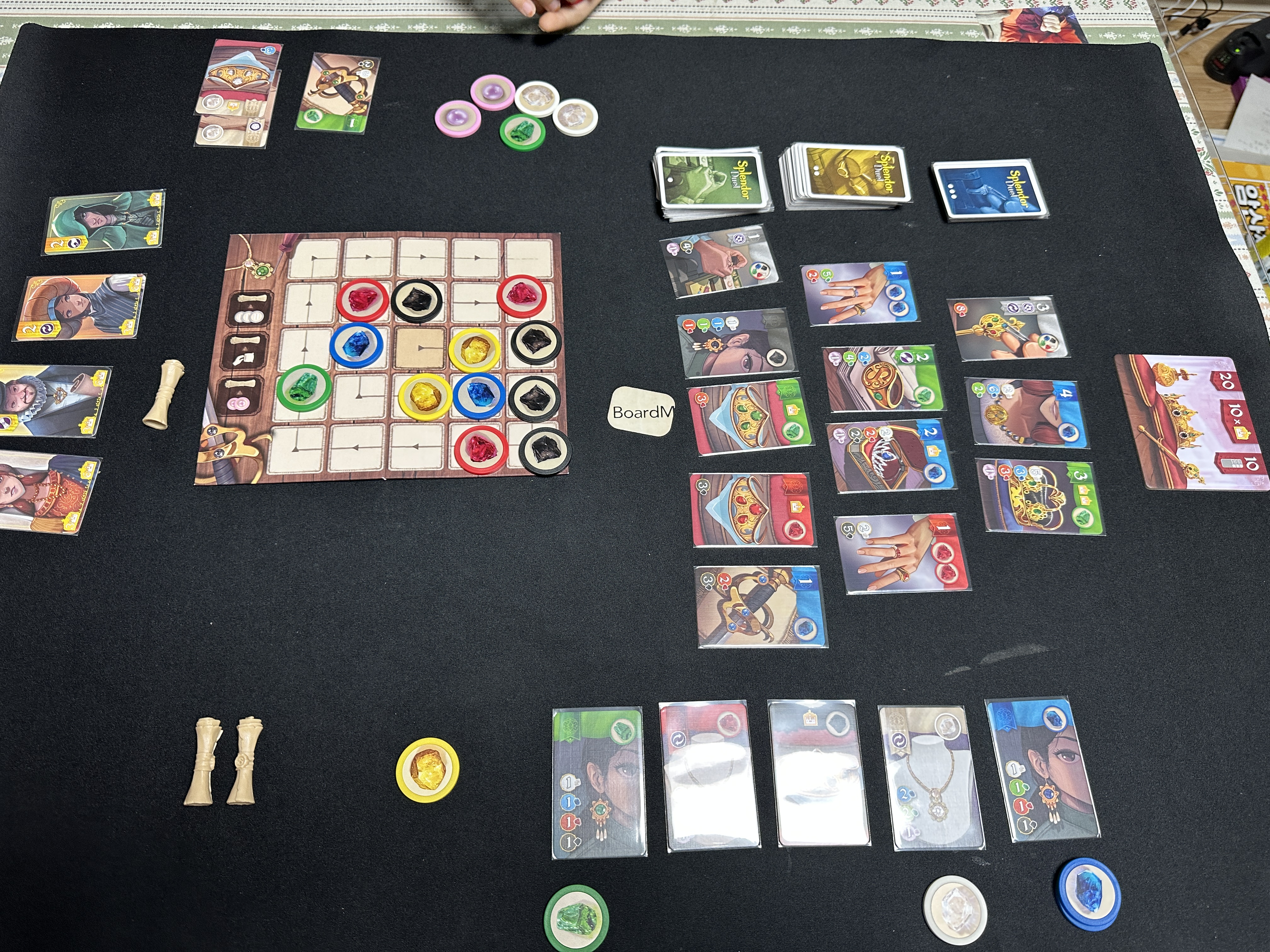 기본적으로 스플렌더와 뼈대는 같다. 듀얼에서는 보석을 가져가는 방식이 약간 달라졌고 진주와 특권 스크롤이라는 새로운 요소가 추가되었는데, 이런 부분들은 대부분 상대를 견제할 수 있는 장치로 작용한다. 별거 아닌 것 같지만 이런 부분은 플레이시에 매우 중요한 부분으로, 딱 한 수 정도를 벌릴 수 있는 장치이기 때문에, 플레이 중에 내가 원하는 보석을 가져가면서 동시에 상대방이 원하는 보석을 가져가기 어렵게 만드는 것이 기본적으로 항상 고려해야 하는 행동이기도 하다. 이런 저런 면을 고려하면 실제 게임 운용 방식이 오리지널과 50%정도는 다르다고 할 수 있겠다.