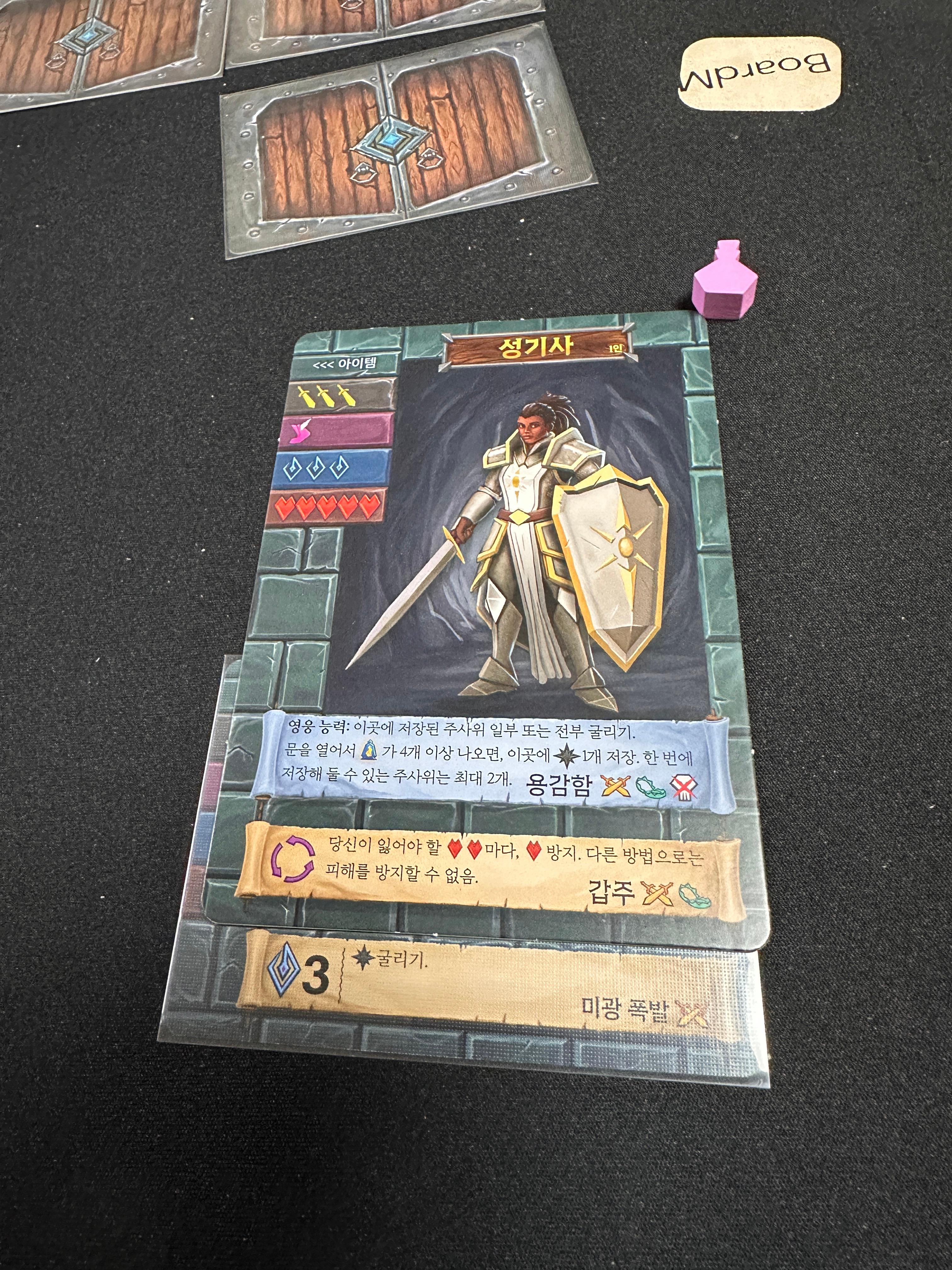- 2인플 시 다소 복잡함 : 2인 플레이에서는 캐릭터 간의 능력 분배와 주사위 공유가 직관적이지 않아 플레이 타임이 길어질 수 있다.