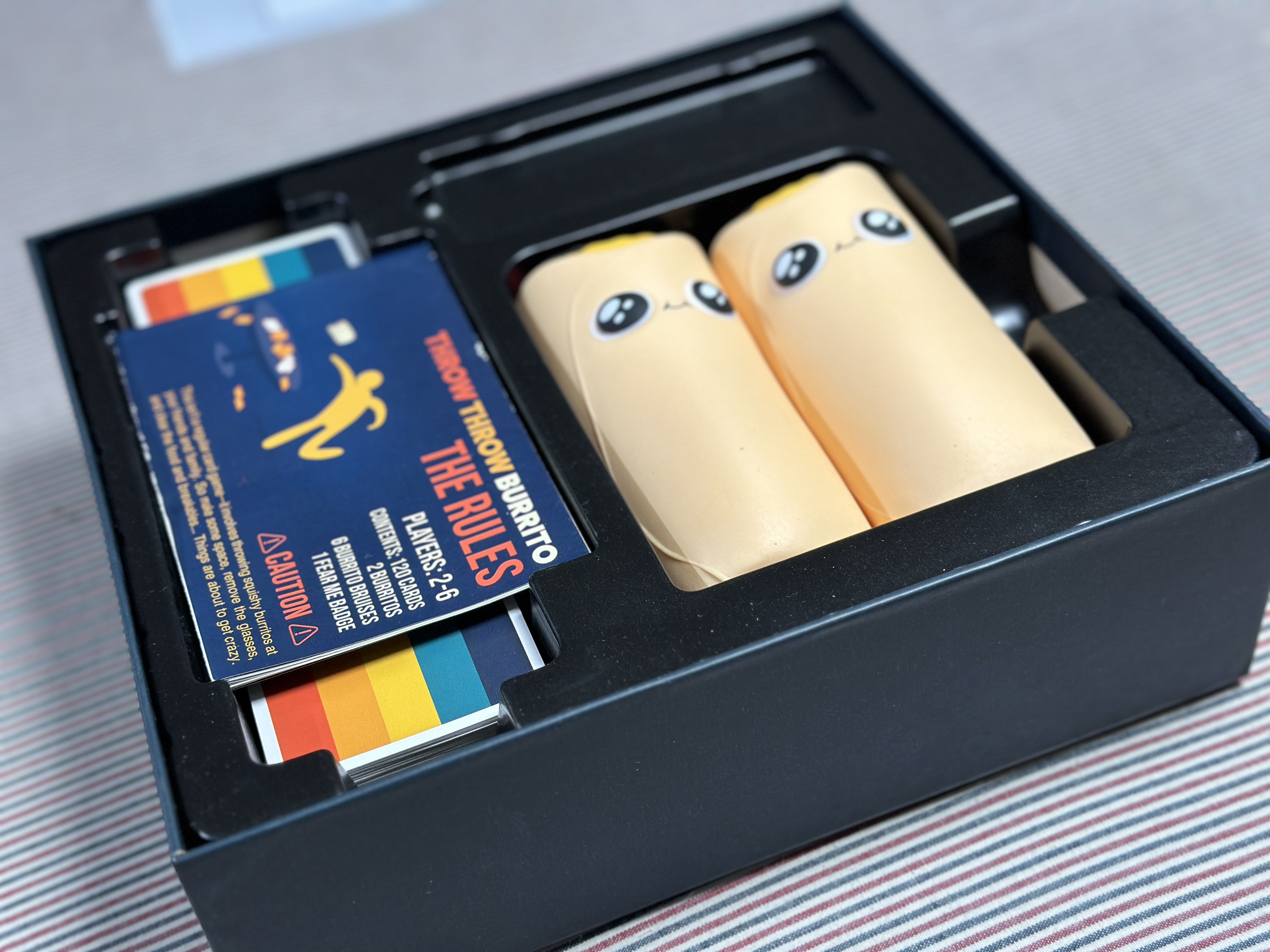 개발사인 Exploding Kittens의 창립자들이 Kickstarter로 시작해 큰 반향을 불러일으켰으며, 이름만 들어도 웃음이 밀려오는 “Throw Throw Burrito”는 원래 “Blowfish Throwfish”나 “Chuckin’ Chimichangas” 같은 아이디어에서 발전했다