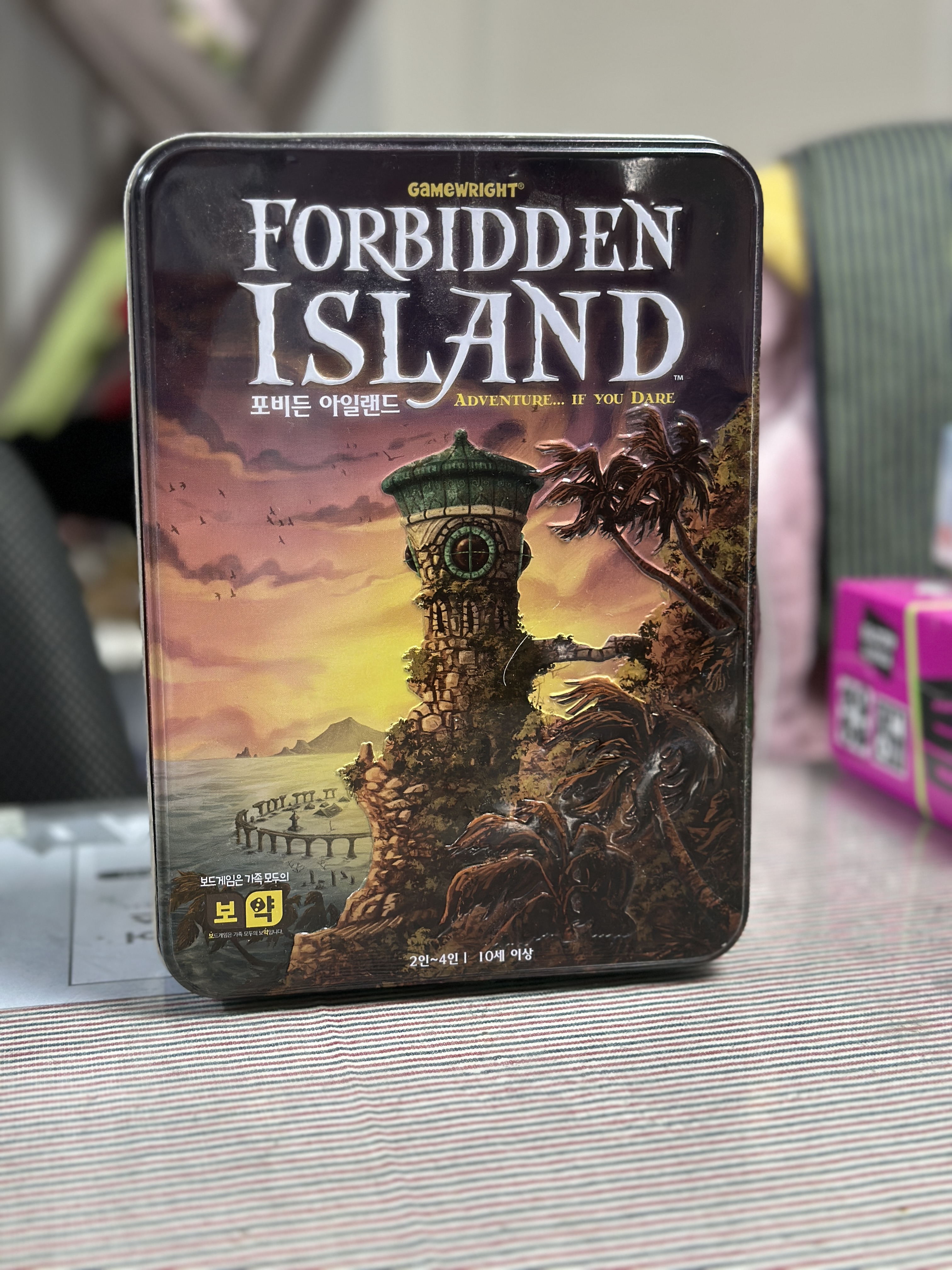 ‘포비든 아일랜드(Forbidden Island)’는 매트 리로크가 디자인하고 2010년에 Gamewright에서 출시한 협력형 보드게임이다. 플레이어들은 사라져가는 신비한 섬에서 4가지 신성한 보물(지구, 불, 바람, 바다의 성배)을 찾아 헬리콥터 착륙장에 모여 탈출해야 한다. 섬은 게임이 진행될수록 플러드 카드에 의해 타일이 침수되고, 결국 사라지기 때문에 긴장감이 극에 달한다.